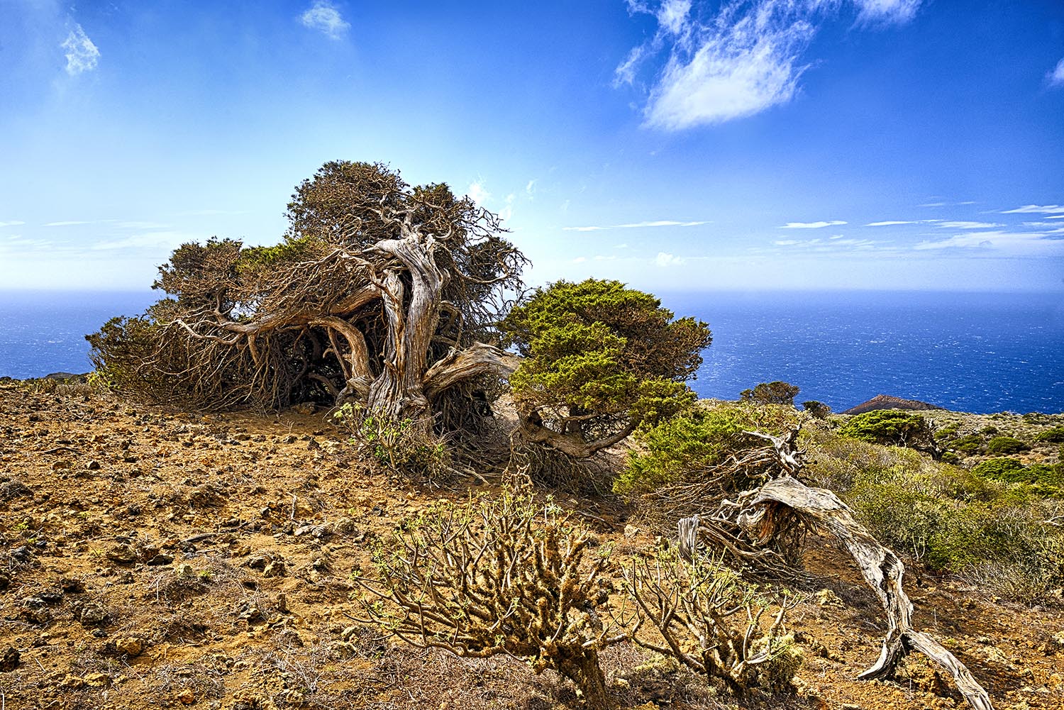 El Hierro cuenta con una red de 15 senderos homologados con categorías GR, PR y SL recorre más de 250 kilómetros de caminos usados tradicionalmente por sus habitantes para realizar las labores de pastoreo, los intercambios comerciales, «la mudada» o trashumancia anual, o la Bajada de la Virgen de los Reyes que cada cuatro años se convierte en el máximo exponente festivo de la cultura herreña Atraviesan esta Reserva de la Biosfera y Geoparque , sus espacios naturales y sus habitantes; el fayal-brezal, el bosque de laurisilva, el sabinar o el pinar y ofrecen las mejores de la vistas de las manifestaciones geológicas que formaron la más joven de las islas del Archipiélago Canario